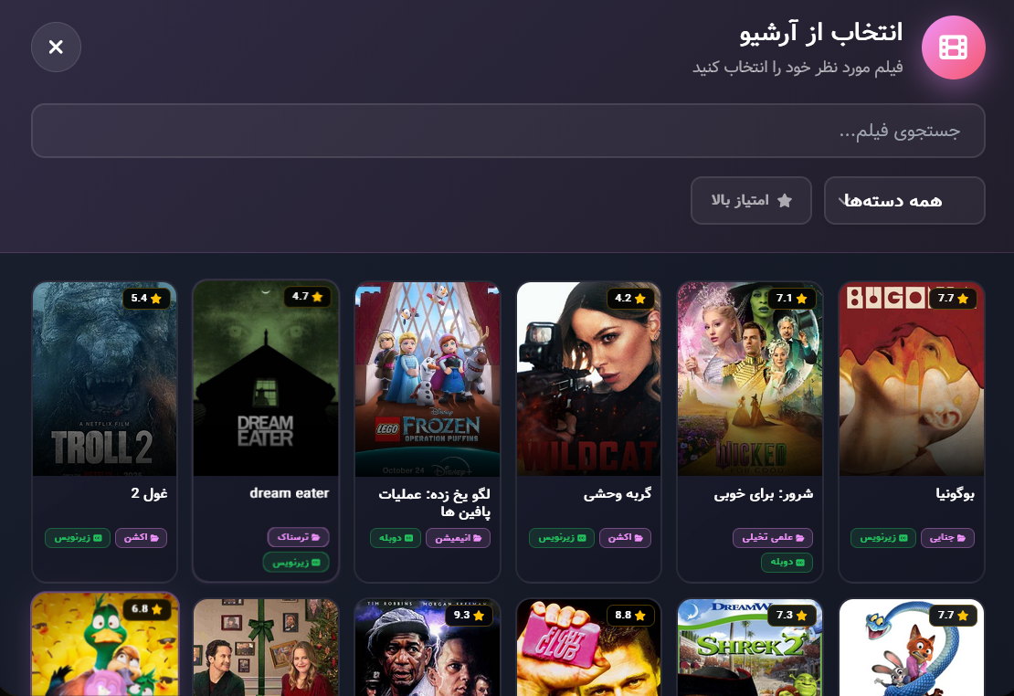 انتخاب فیلم از آرشیو ببینیم + ویدیو اموزشی در انتهای آموزش اطلاعیه مهر ماه 1404 : به علت مشکلات کیپی رایتی و نبودن منبع مناسب برای تکمیل ارشیو بخش ارشیو موقتا غیر فعال شده است. برای انتخاب فیلم از ارشیو ببینیم کافیه بعد از ساخت لابی روی دکمه آرشیو در